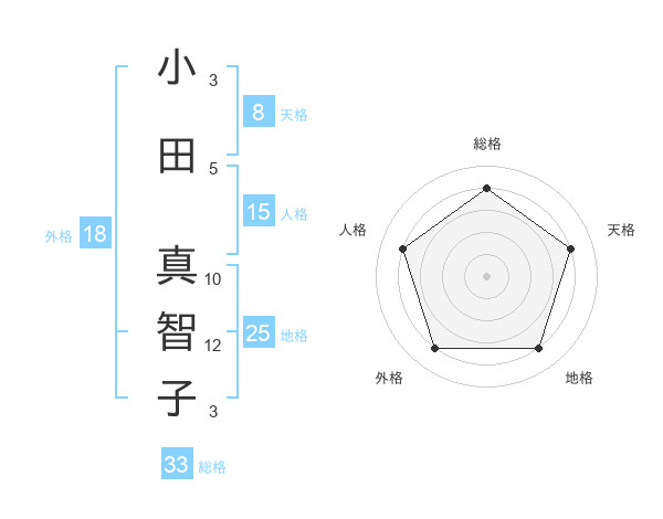 小田 真智子さんの天格は8画の4点!