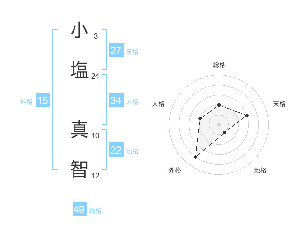 小塩 真智さんの総格は49画の2点!