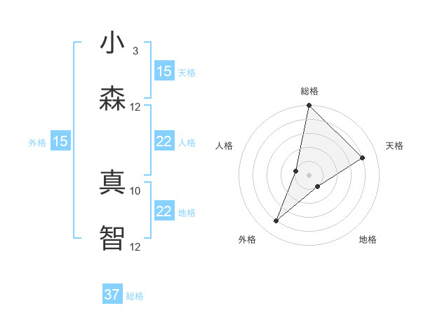 小森 真智さんの総格は37画の5点!