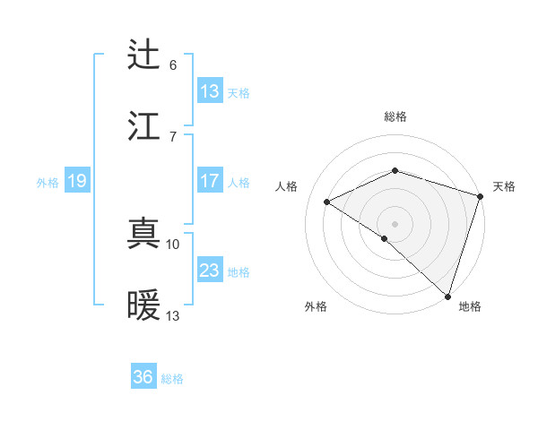 辻江 真暖さんの天格は13画の5点!
