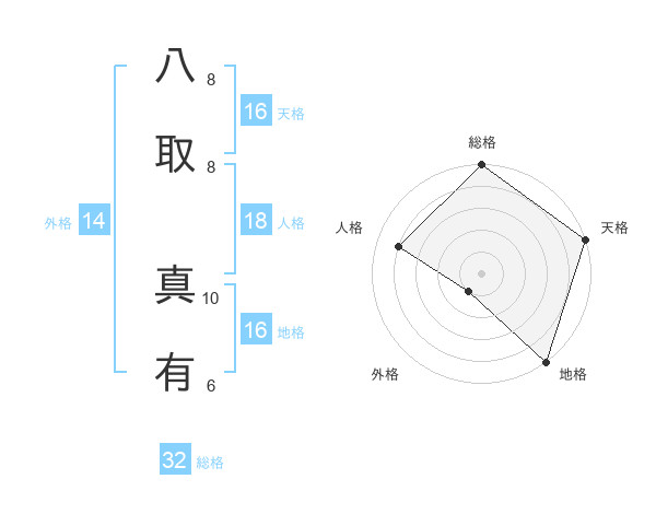 八取 真有さんの総格は32画の5点!