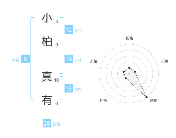 小柏 真有さんの総格は28画の1点!