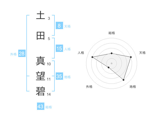 土田 真望碧さんを姓名の画数から五運を鑑定
