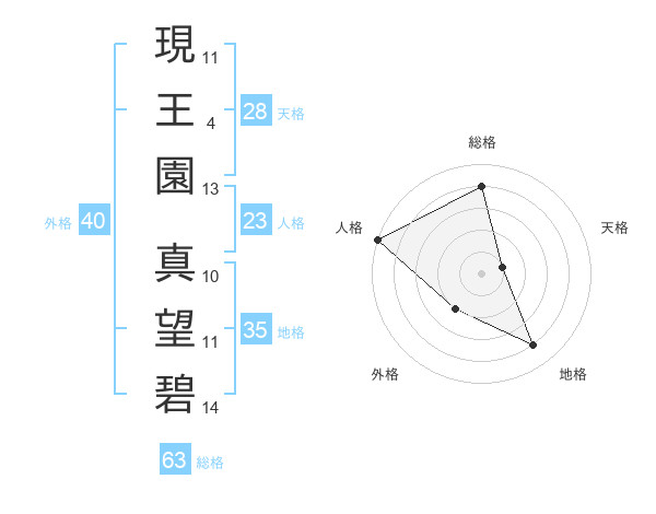 現王園 真望碧さんを姓名の画数から五運を鑑定