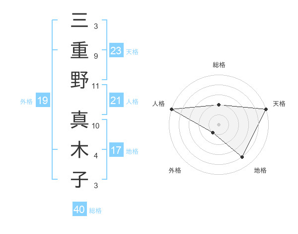 三重野 真木子さんを姓名の画数から五運を鑑定