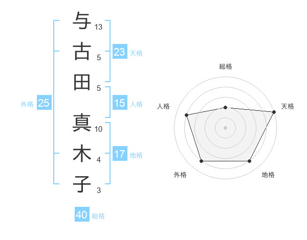 与古田 真木子さんの天格は23画の5点!
