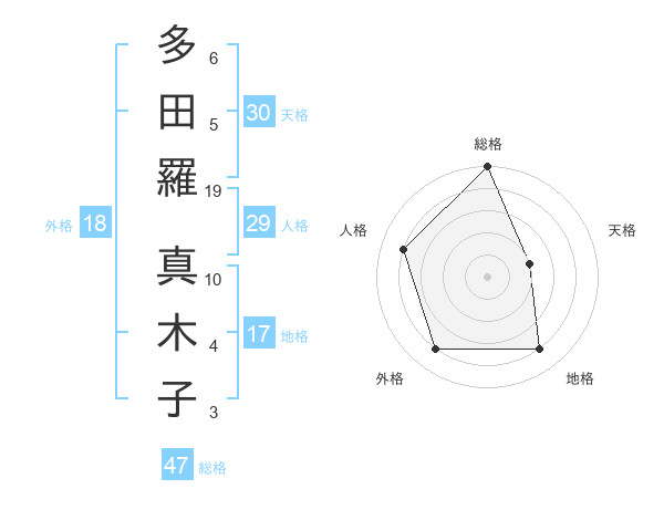 多田羅 真木子さんを姓名の画数から五運を鑑定
