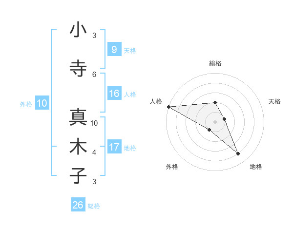 小寺 真木子さんを姓名の画数から五運を鑑定