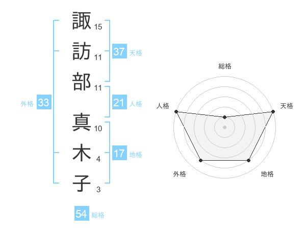 諏訪部 真木子さんを姓名の画数から五運を鑑定