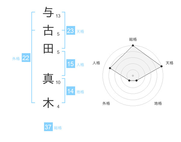 与古田 真木さんの天格は23画の5点!