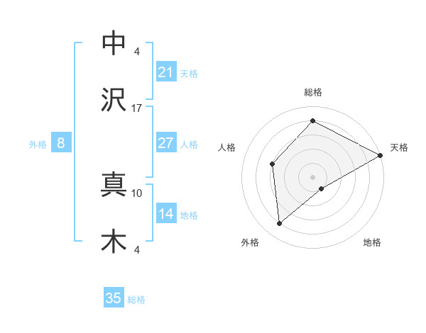 中沢 真木さんの総格は35画の4点!