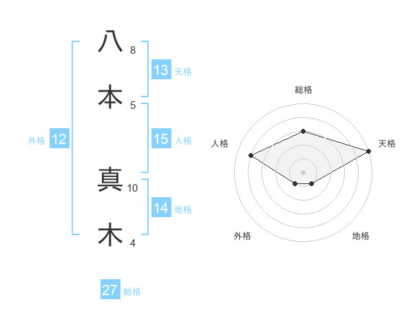 八本 真木さんの天格は13画の5点!