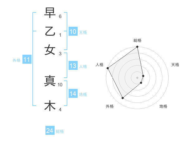 早乙女 真木さんを姓名の画数から五運を鑑定