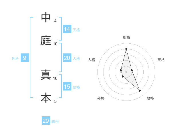 中庭 真本さんの総格は29画の4点!