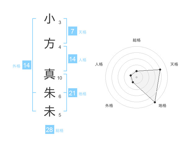小方 真朱未さんの天格は7画の4点!