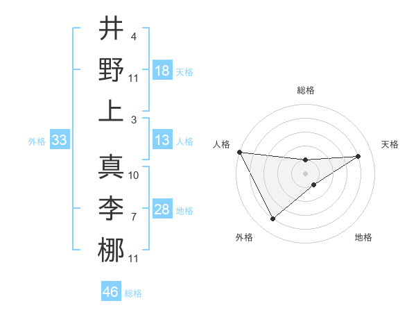 井野上 真李梛さんを姓名の画数から五運を鑑定