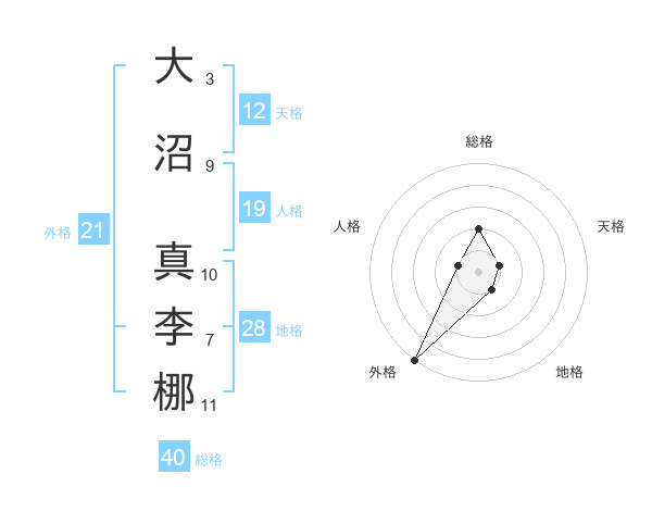 大沼 真李梛さんを姓名の画数から五運を鑑定