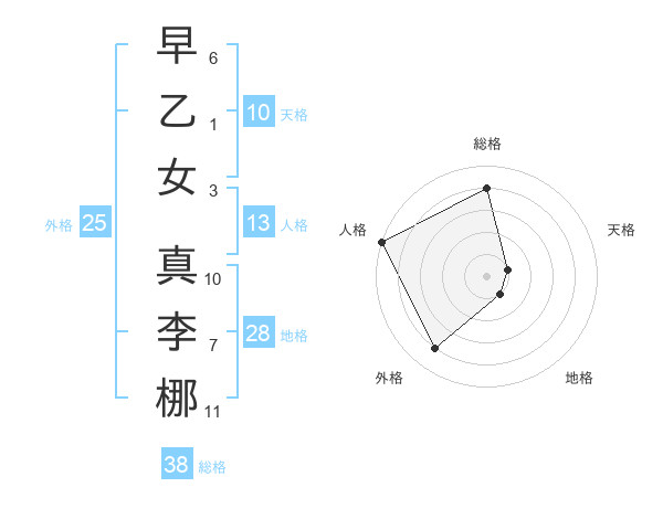 早乙女 真李梛さんを姓名の画数から五運を鑑定
