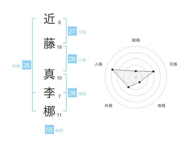 近藤 真李梛さんの天格は27画の3点!