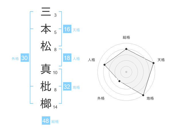 三本松 真枇榔さんを姓名の画数から五運を鑑定