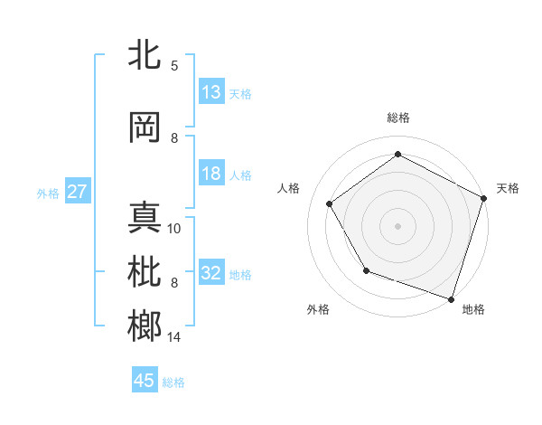 北岡 真枇榔さんを姓名の画数から五運を鑑定