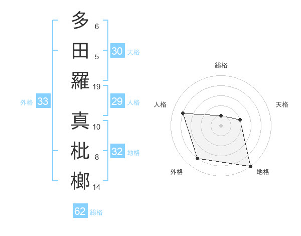 多田羅 真枇榔さんを姓名の画数から五運を鑑定