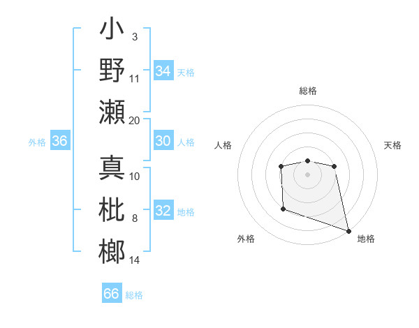 小野瀬 真枇榔さんを姓名の画数から五運を鑑定