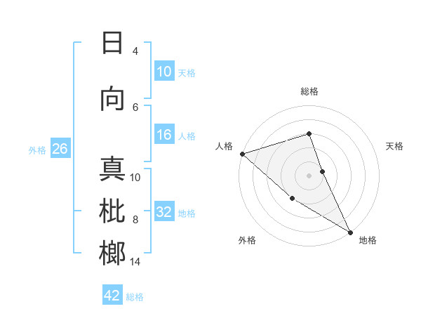 日向 真枇榔さんを姓名の画数から五運を鑑定