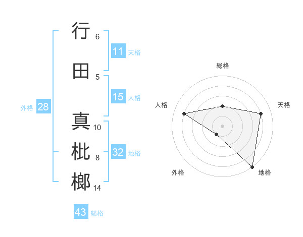 行田 真枇榔さんを姓名の画数から五運を鑑定