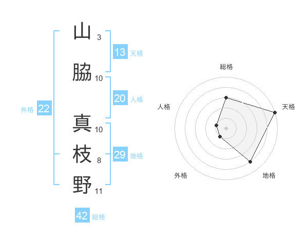 山脇 真枝野さんの総格は42画の3点!