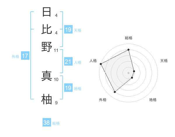日比野 真柚さんの総格は38画の4点!