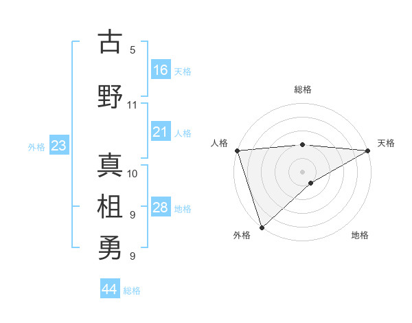 古野 真柤勇さんを姓名の画数から五運を鑑定
