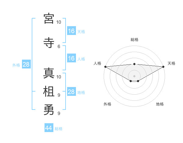宮寺 真柤勇さんの天格は16画の5点!