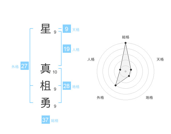 星 真柤勇さんの総格は37画の5点!