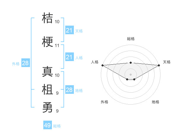 桔梗 真柤勇さんを姓名の画数から五運を鑑定