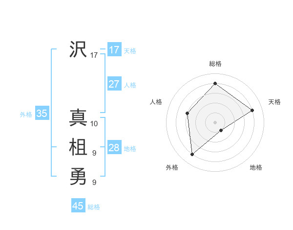沢 真柤勇さんを姓名の画数から五運を鑑定