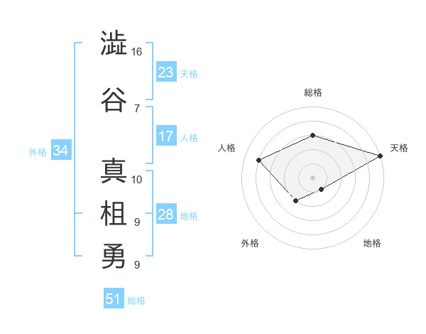 澁谷 真柤勇さんの総格は51画の3点!