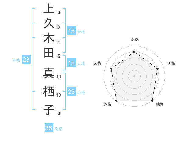 上久木田 真栖子さんの外格は23画の5点!