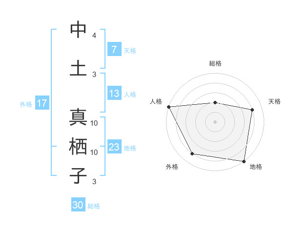 中土 真栖子さんの総格は30画の2点!
