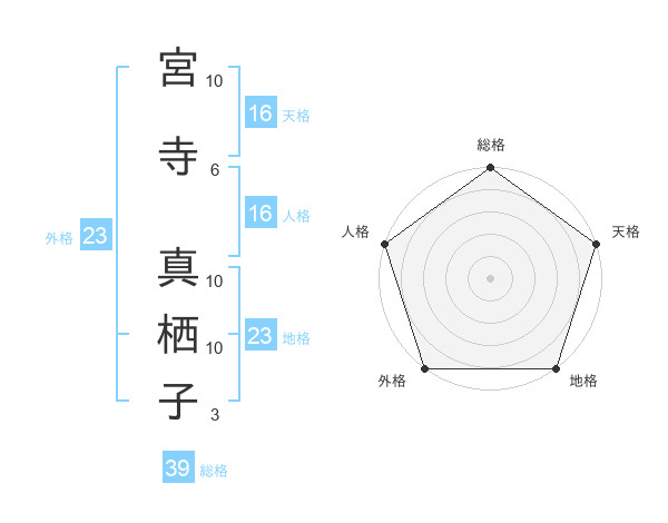 宮寺 真栖子さんを姓名の画数から五運を鑑定