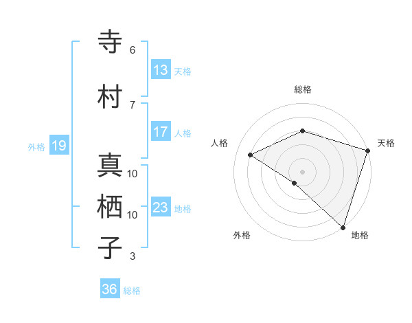 寺村 真栖子さんの天格は13画の5点!