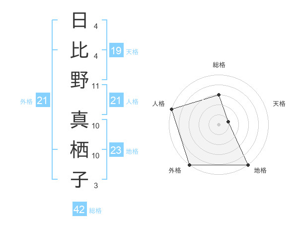 日比野 真栖子さんを姓名の画数から五運を鑑定