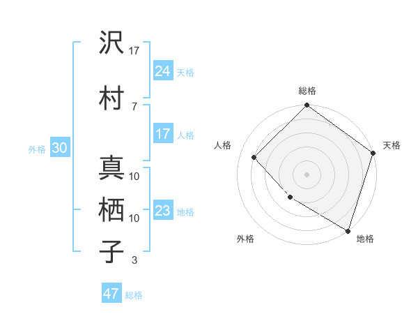 沢村 真栖子さんを姓名の画数から五運を鑑定