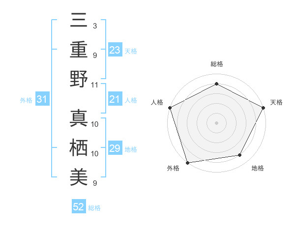 三重野 真栖美さんを姓名の画数から五運を鑑定