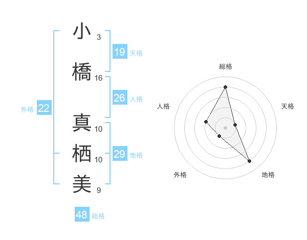 小橋 真栖美さんを姓名の画数から五運を鑑定