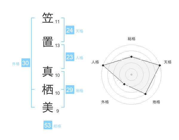 笠置 真栖美さんの総格は53画の3点!