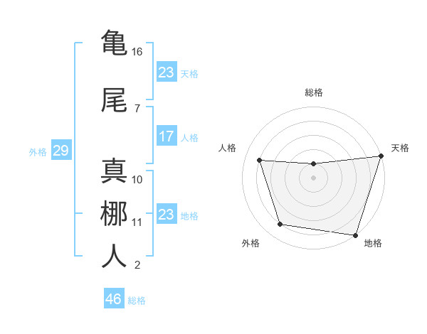 亀尾 真梛人さんの天格は23画の5点!