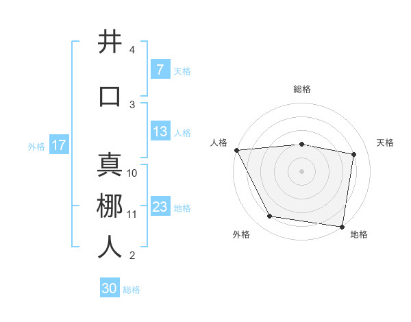 井口 真梛人さんの地格は23画の5点!