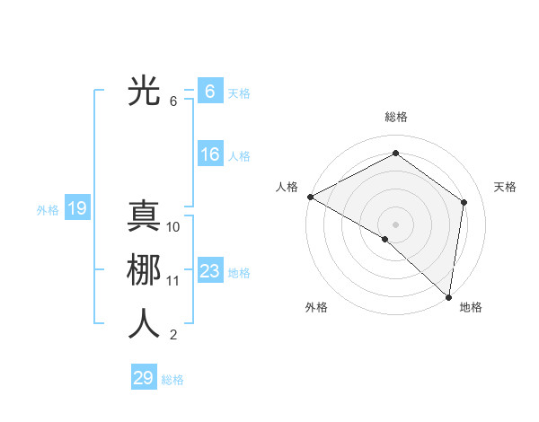 光 真梛人さんの総格は29画の4点!