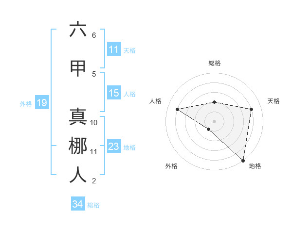 六甲 真梛人さんを姓名の画数から五運を鑑定